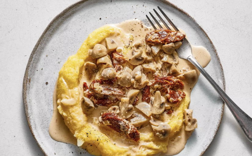 Publié le 25 janvier 2026Auteur RichardCatégories Plat principal, Souper, VégétarienMots-clés Champignons, demi-crème, oignon rouge, semoule, tomates séchées